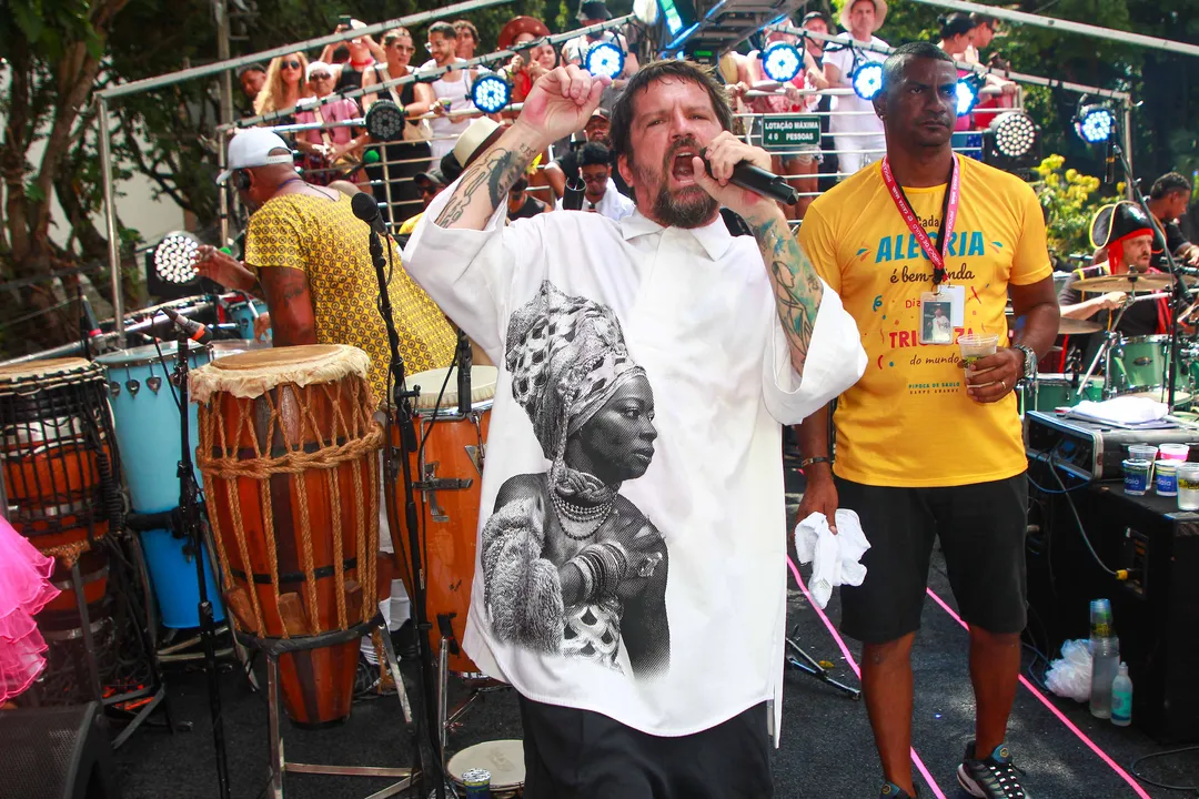 Ele ainda pediu água para sua equipe e jogou para o público enquanto o trio tentava avançar. "Uma água aqui pra galera, por gentileza. Tô vendo o calor na cara das pessoas", comentou Saulo, que começou a jogar copinhos para os foliões.