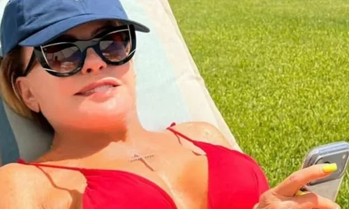 A apresentadora Ana Maria Braga parou a internet nesta sexta-feira (20) ao compartilhar um clique raríssimo de biquíni para celebrar o início do final de semana. Aos 76 anos, a comandante do "Mais Você" esbanjou estilo e boa forma ao posar com um modelo cortininha vermelho, completando o visual com boné, óculos escuros e um pingente de crucifixo.