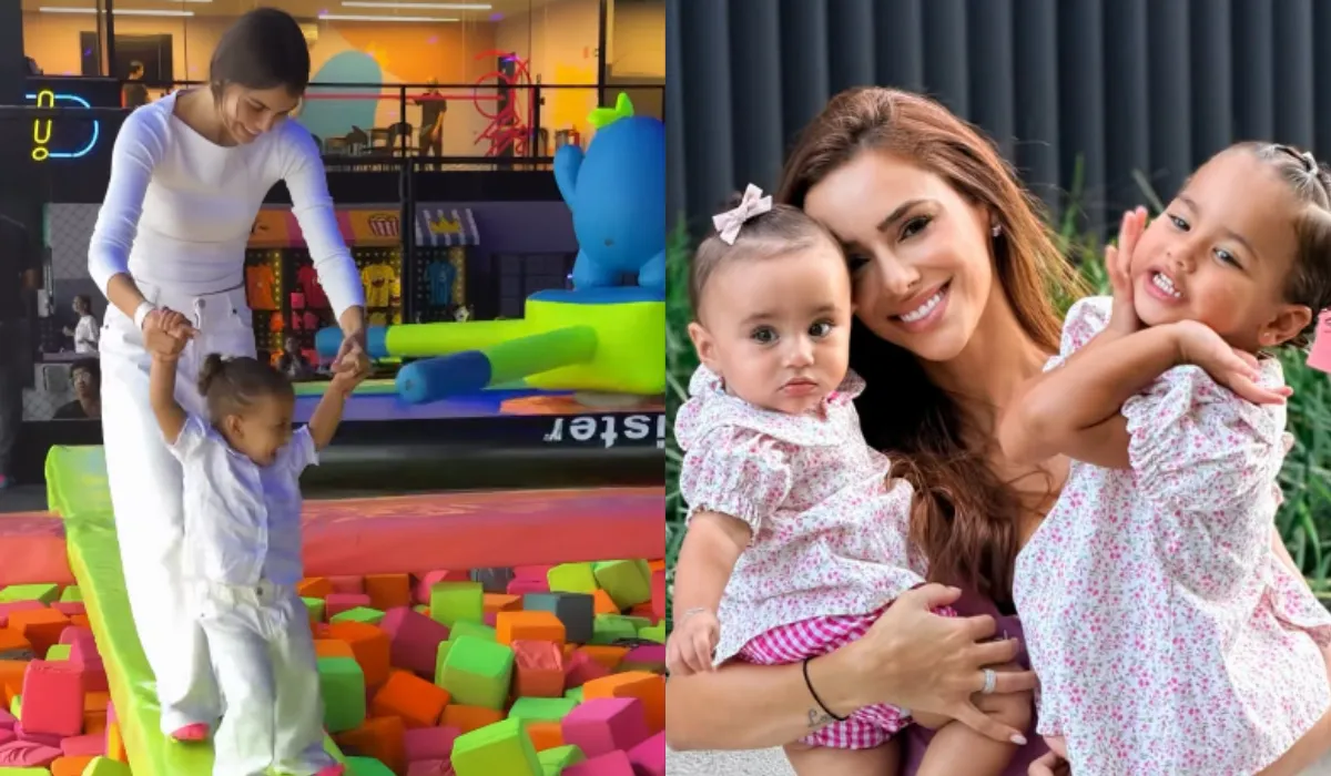 Bruna Biancardi e Amanda Kimberlly surgiram em um parque ao lado das filhas, Mavie, de 2 anos, e Helena, de 1, em Praia Grande, no litoral de São Paulo, na tarde de quinta-feira (26). Os momentos foram registrados por meio das redes sociais das influenciadoras.