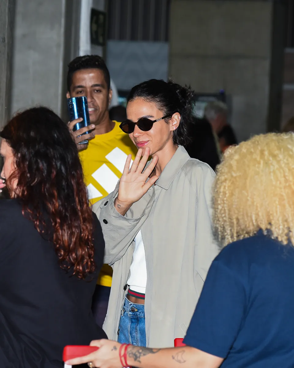 O acessório, produzido na Itália e pertencente à coleção Outono-Inverno 2025, é confeccionado em camurça, possui forro de couro macio e um detalhe metálico à la freio de cavalo. Além da bolsa, Bruna carregava uma mala e foi fotografada no saguão usando óculos escuros e calça jeans baggy. Com parte da barriguinha à mostra, ela completou o look com um trench coat e um top branco, equilibrando conforto e estilo.