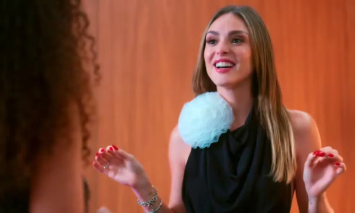 Ao lado de Laurinha (Kamila Amorim) no ensaio, a vilã se espanta ao soltar a voz e perceber que aquela bebida de fato faz efeito. Imediatamente, a jovem se impressiona com o próprio desempenho. "Amiga! É milagre que fala?", questiona, sorridente.