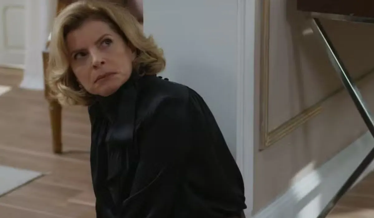 A troca de palavras aparentemente banal reforça o clima de dissimulação, típico dos dois personagens. Enquanto o casal tenta manter as aparências, o suspense cresce nos bastidores: Marco Aurélio observa discretamente a movimentação no salão, evitando qualquer contato com Maria de Fátima (Bella Campos), que também circula pelo local. A ausência de qualquer interação entre eles não passa despercebida.