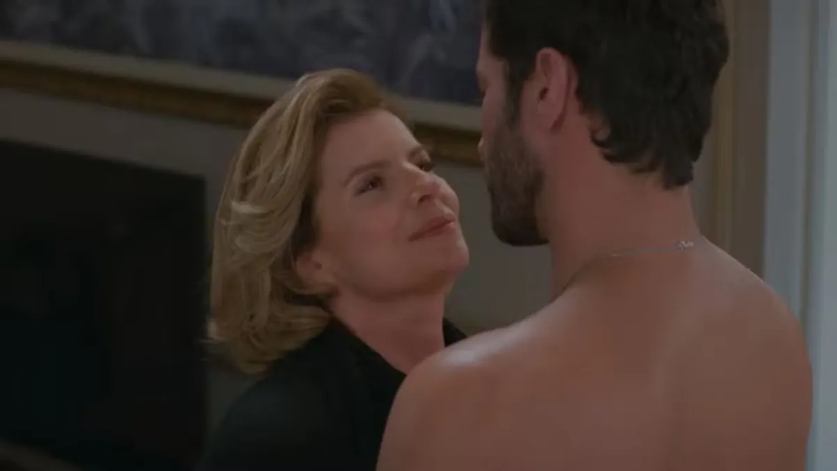 Antes do envolvimento com César, Odete também terá uma noite quente com Mário Sérgio (Thomás Aquino).