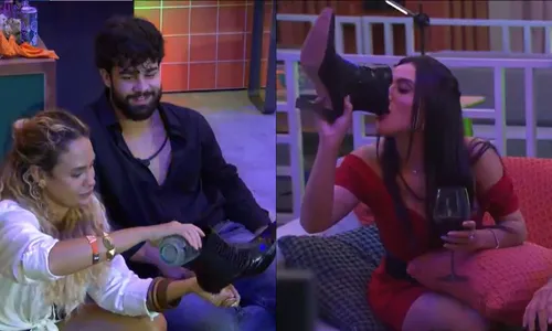 A Festa do Líder do "BBB 26", na madrugada desta quinta-feira (22), contou com uma modalidade inédita de bebida: drink na bota. Sarah Andrade e Alberto Cowboy foram os responsáveis pela "especiaria" com os respectivos calçados e causaram polêmica.