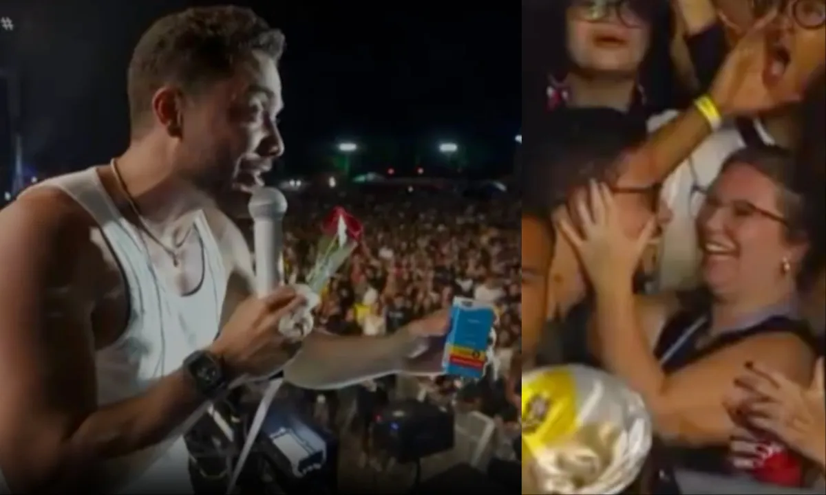 Durante seu show no Festival de Verão 2026 (FV 26), Wesley Safadão protagonizou um momento descontraído que arrancou risadas do público neste domingo (25). Em clima de resenha, o cantor interagiu com a plateia e surpreendeu um casal, presenteando-os com uma rosa e uma cartela de "tadalafila", medicamento amplamente utilizado para tratar disfunção erétil. Essa dinâmica tem sido uma marca registrada de seus shows recentes.
