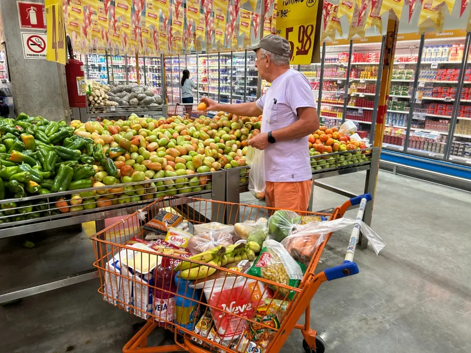 Por outro lado, 11 itens ficaram mais baratos no período. As principais quedas foram observadas na maçã (-12,09%), açúcar cristal (-6,74%) e café moído (-5,04%), além de reduções em produtos como queijo, óleo de soja, macarrão e pão francês.