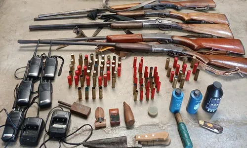 Na ação, foram apreendidas duas espingardas calibre 28, uma espingarda cano duplo calibre 32, duas espingardas calibre 32, 44 cartuchos cal. 32, 14 cartuchos calibre 28, dois cartuchos cal. 36, três apitos chamariz, cinco rádios comunicadores, duas bases carregadoras, dois frascos de pólvora, um frasco de espoletas, um secador de cartucho, um extrator de espoleta, uma tatuzeira de captura, duas facas e um canivete.