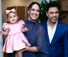 Histórias Zezé Di Camargo e Graciele Lacerda posam com a filha em show; FOTOS Nas fotos, Graciele apareceu com um vestido azul-marinho, que combinava com o terno do cantor